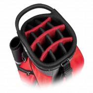 Featured pockets include a strategically placed sunglass and cell phone pocket, velour-lined waterproof valuables pocket and a thermal-lined cooler pocket large enough to get you through a whole round. A hidden pocket on the bottom conceals a full-sized rain cover for those harsh weather days.
